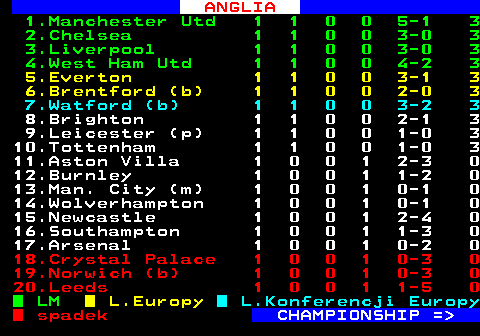 Premier League po 1 kolejce 17/08/2021 Dajer