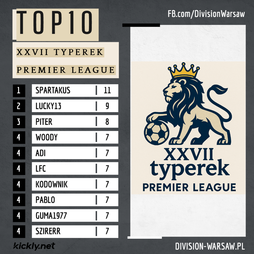 Znamy pierwszego lidera naszego typerka. To dobrze znany w kręgu fanów Premier League Spartakus, który ligą angielską interesuje się od bardzo dawna, choć akurat kibicuje pewnej londyńskiej drużynie.