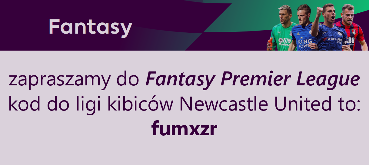Do rozpoczęcia zmagań w Premier League coraz bliżej. Zatem ruszamy powoli z naszymi zabawami. Na typerka jeszcze chwilę musicie poczekać, ale już teraz zapraszam do Fantasy Premier League – kod ligi kibiców Newcastle United to fumxzr. Zakładajcie drużyny, wybierzcie skład i dołączcie do nas!