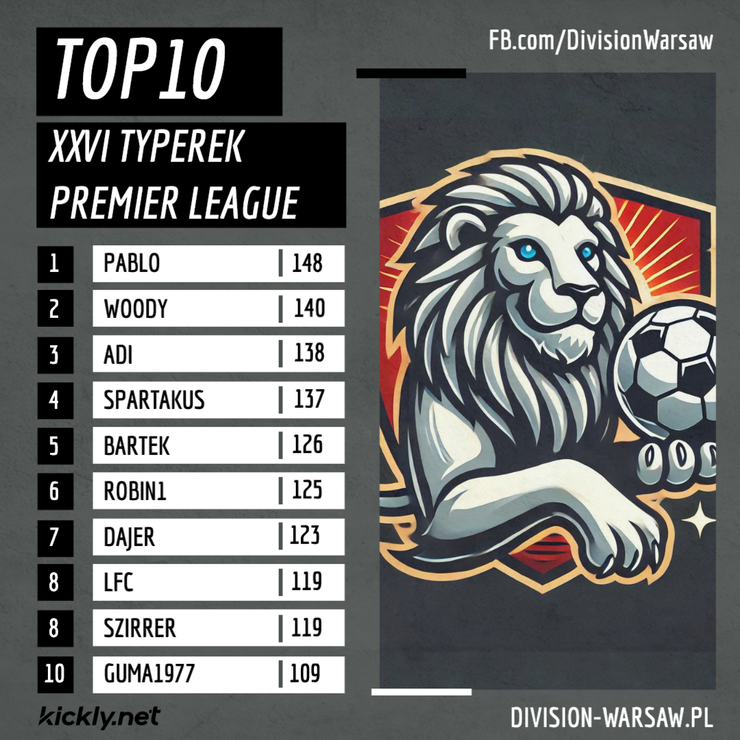 klasyfikacja: http://division-warsaw.pl/klasyfikacja-xxviii-edycja-premier-league/